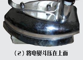 工具:不带蒸汽的电熨斗一台、厚布一块或硬纸板一块、桌子