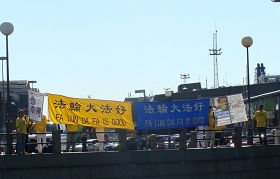 ![]() 路人看到法轮功学员抗议中共迫害,纷纷表示关注 |