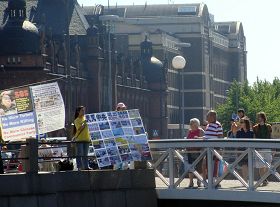 活动吸引了不少来往的行人及游客,纷纷询问发生了什么事情,如何可以帮助法轮功等等。