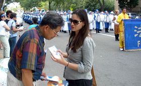 菲律宾驻纽约总领事赛西丽亚•瑞邦女士(Cecilia B. Rebong)说:“天国乐团太棒了,有这么庞大的阵容,真是非常好。”瑞邦女士还说,她从报道中知道法轮大法。