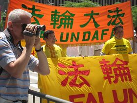 他非常支持法轮功学员如此和平理性地表达制止迫害的诉求,他激动地抨击许多西方民主国家,为了与中共的利益勾结而漠视中共对法轮功及其它信仰的迫害,他说要把今天用手机录下的影像寄给欧洲的友人,让更多的人知道今天发生的事。