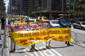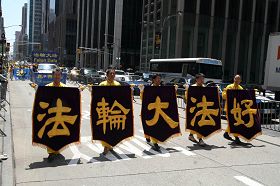 ![]() 六千法轮功学员在纽约曼哈顿举行盛大游行,展示法轮大法好。 |