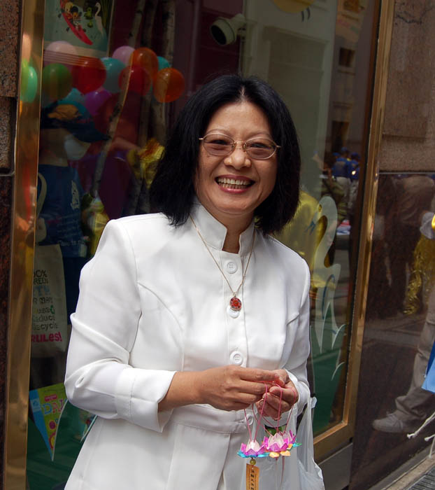 籍洪介绍说,一九九五年她身患胰头癌晚期,被医生判了死刑,在身体状况急剧下降的危险时刻,在朋友的介绍下,九六年在中国开始修炼法轮功,仅仅一、二个月的时间,身体状况急速回升,一年后为了配合法轮功祛病健身的调查而去医院体检,结果是一切指标完全恢复正常。籍洪说:“如果没有炼法轮功,我的生命早就没了。现在大陆法轮功学员还在被迫害,还有那么多人不知道法轮功的真相,我有责任把真相讲给人们,而纽约又是非常重要的地方,所以我每年都来这里参加盛大的游行。”
