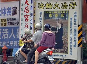 ![]() 路过的台湾民众也在看法轮功真相横幅 |
