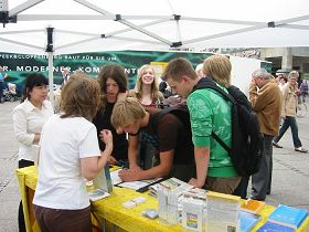 ![]() 法轮功学员在汉诺威举办信息日活动,人们驻足阅读法轮功真相展板 |