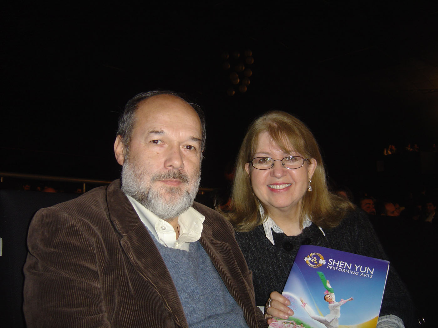 特拉盖尔主要从事平面设计,也做过舞台服饰、首饰的设计,在地铁站里看到神韵的海报后,上网详细地查了神韵巡演的信息,了解到神韵演出所到之处引起的轰动后,特拉盖尔马上给自己和先生订了票。