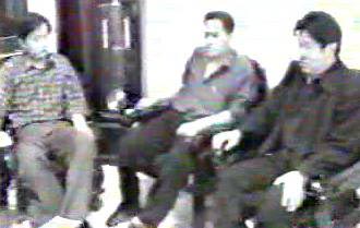 ![]() 上图:城关派出所恶警张子山领着便衣恶警田增海等在去抄某大法弟子家的路上 | ![]() 上图:二零零一年五月十一日夜靖军(左、积极参与迫害,由信访局普通人员升为团县委书记、范寨乡乡长)与任广民(中)、韩洪光(右)研究夜审迫害计划(资料照片来源: “六一零”档案室) |