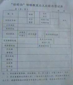 ![]() 上图:洪玉振 | ![]() 上图:县“六一零”逼迫大法学员填了无数次的登记表(复印件) |