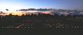 夜幕降临,学员们默默地坐在草坪上,手捧着蜡烛,一盏盏烛光摆出了“正法”二字,在夜空中显得特别明亮。烛光守夜的活动上,学员代表还宣读了被迫害致死的已知姓名的法轮功学员名单,整个场面庄严,肃穆,祥和。