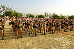 ![]() 图:二零零九年,印度首都德里(Delhi)警察训练大学的上千学生学炼功法 |