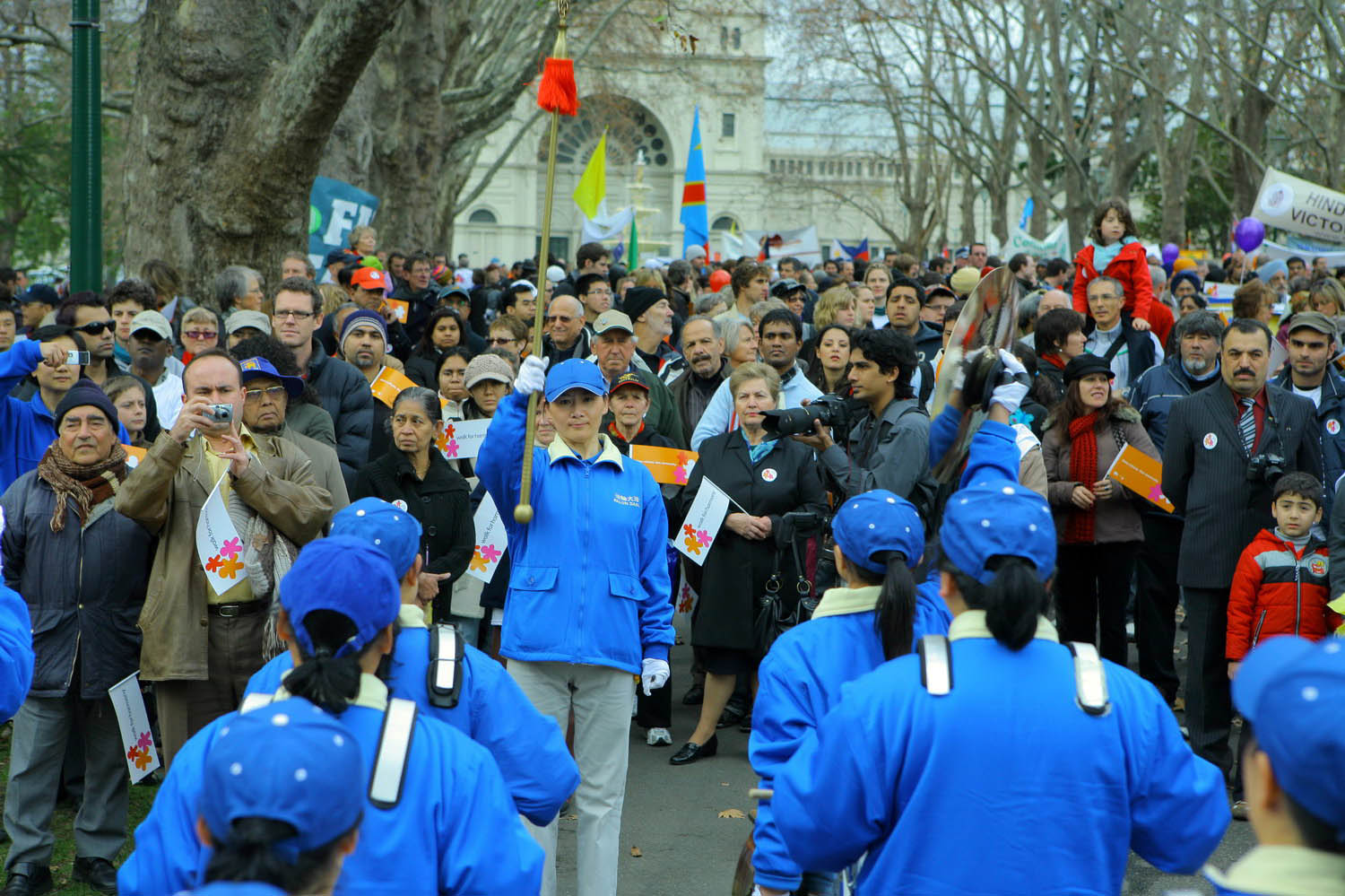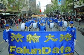 “融洽步行”是由澳大利亚维省政府发起的,旨在展示澳洲社会多元文化成果及多族裔的和谐共处,法轮功学员应邀参加。