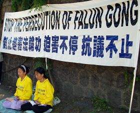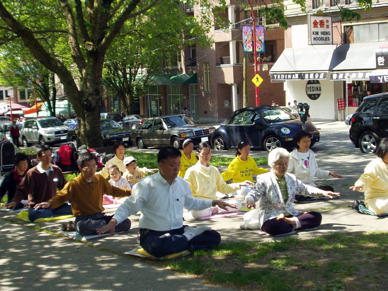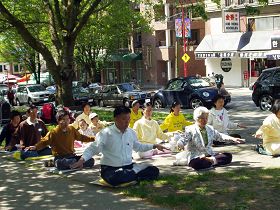 ![]() 法轮功学员在谴责中共迫害集会后演示功法 |