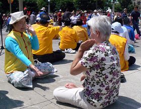 活动组织者之一辛琦华女士介绍说,今年国庆节,许多加拿大人主动找法轮功的炼功地点,要求立刻学习法轮功。许多人留下了自己的姓名和联系方式,希望参加九天班,并了解更多法轮功真相。渥太华老人多依娜(Doina)得知法轮功对健康有益后,要求学习五套功法。