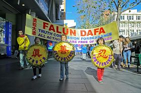 “七•二零”中共迫害法轮功将满十年之际,2009年7月18日,两百多名法轮功学员在澳洲墨尔本市中心举行游行集会,呼吁善良民众和正义人士伸出援手,共同结束这场迫害。