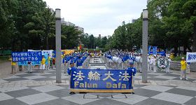二零零九年七月十九日,日本法轮功学员在横滨举行集会游行,晚上在中共驻日使馆前和平抗议,呼吁制止中共对法轮功长达十年的迫害,并点起烛光悼念被迫害致死的中国大陆同修。