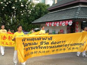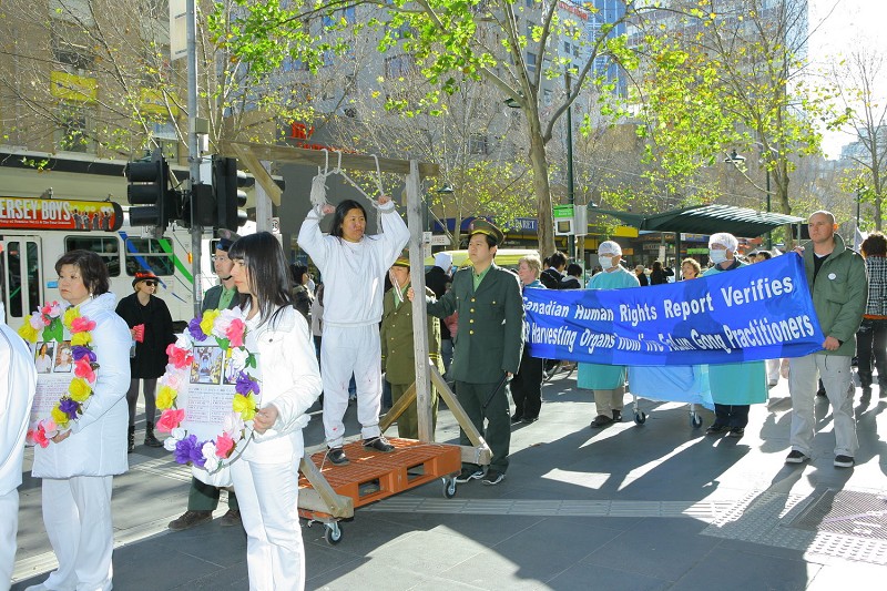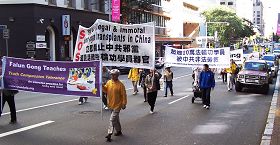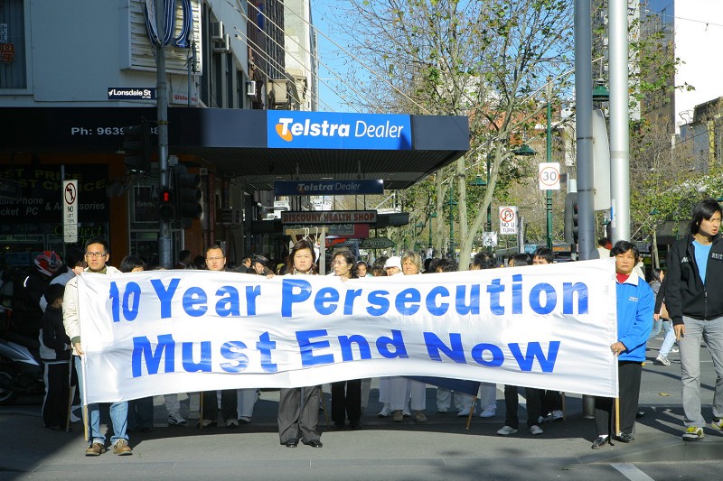游行队伍从墨尔本市中心城市广场出发,沿着宽阔的Swanston大道绕行一周后,返回城市广场举行集会。来自澳洲政府部门、法律界以及非政府组织的几位代表在集会上发言,呼吁结束对法轮功的残酷迫害。悉尼的天国乐团也远道赶来助威,声势浩大的乐团和游行队伍很具震撼力,吸引了不少市民来主动了解法轮功真相。