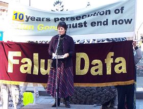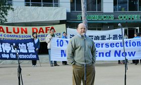 法轮功学员在发言中,以亲身经历揭露中共当局对法轮功所实行的惨无人道的迫害,呼吁各界正义人士共同起来谴责中共的反人类罪行,支持法轮功学员的反迫害壮举。同时呼吁中领馆的工作人员要了解法轮功真相,不要再做中共帮凶。
