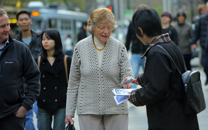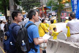 ![]() 市民纷纷接过法轮功真相传单 |
