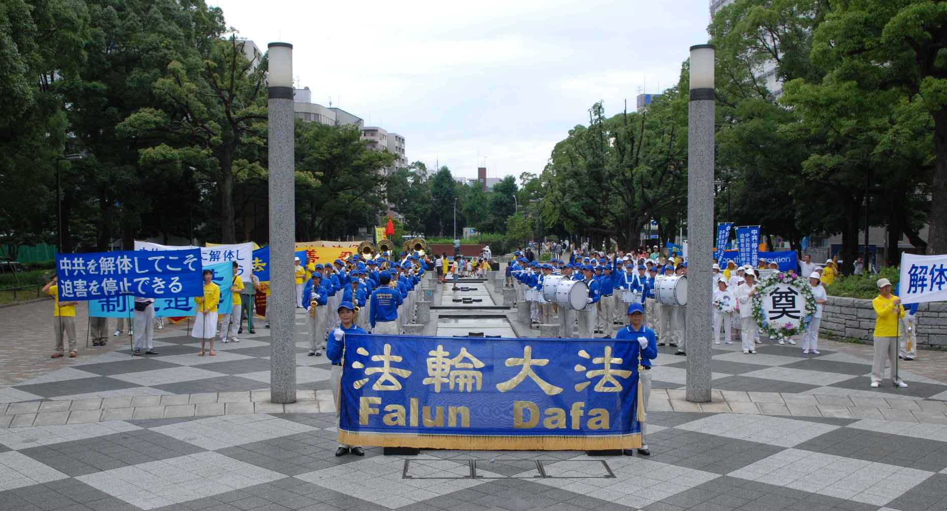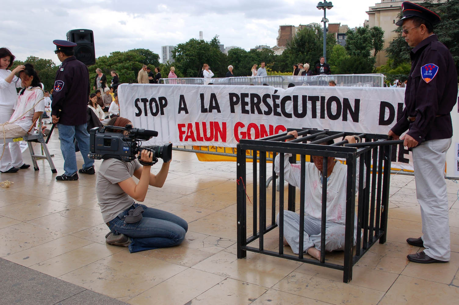 自一九九九年七月二十日中共开始迫害法轮功起,法国的法轮功学员们就在这个世界著名的景点——埃菲尔铁塔下的人权广场上拉起了“法轮大法好”、“停止迫害法轮功”等横幅,向民众讲真相,向法国政府、向来自世界各地的游人讲真相。整整十个年头,无论严寒酷暑都没有动摇法轮功学员的信念:正义必将战胜邪恶,迫害注定失败。