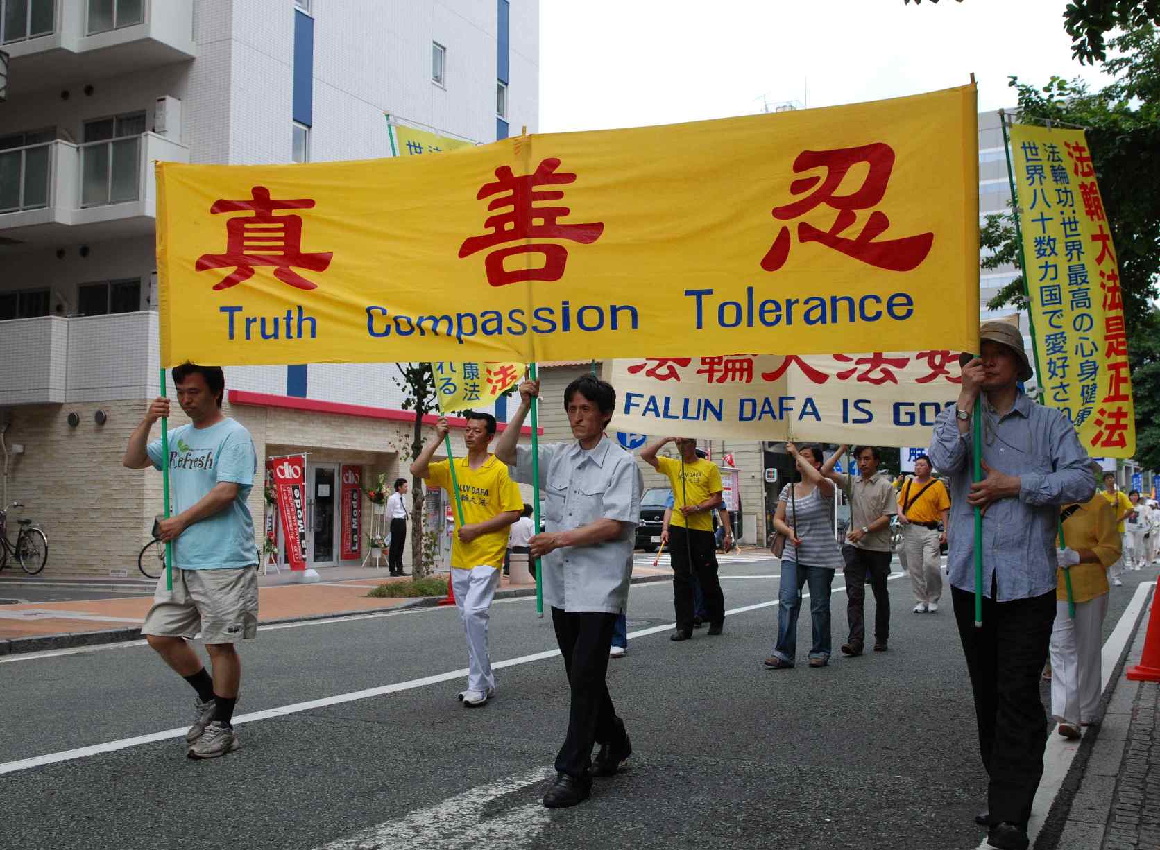 十年前,被誉为“明星功派”的法轮功,昼夜间就被污蔑成了“×教”,大魔头叫嚣“三个月消灭法轮功”,邪党下禁令不准炼法轮功,警察威胁、便衣监视,大法弟子依然集体学法、炼功;九九年“七·二零”上访,被警告、被跟踪、被追堵,大法弟子毅然去北京证实法,火车上不了,乘汽车,汽车上不了就步行,磨烂了鞋,打破了脚板,依然上天安门举横幅、发传单,“法轮大法好!”“真善忍好!”“大法师父好!”“还我大法清白!”“还我师父清白!”震天地、动鬼神。被抓捕、被毒打、被威胁,依然铿锵有辞“还炼!这么好的功法为什么不炼!”“大法师父给了我新的生命,我为什么要背信弃义!”目睹这一切,善良的人们,在为大法弟子落泪。