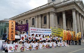 【明慧网二零零九年七月二十日】二零零九年七月十八日下午,法轮功学员在瑞士第一大城市苏黎世的中领馆前举行集会,抗议中共对法轮功修炼者长达十年的残酷迫害。