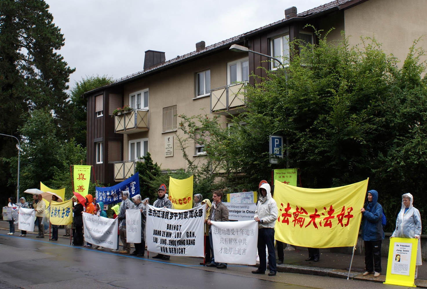 ![]() 瑞士法轮功学员在苏黎世中领馆前举行集会 |