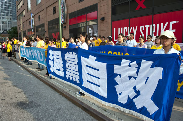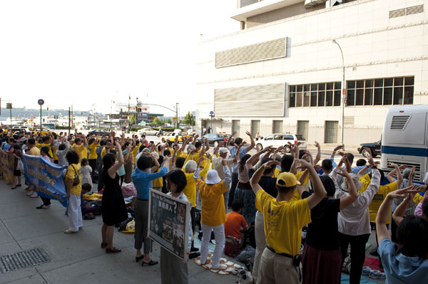 ![]() 法轮功学员在纽约中领馆前集会,呼吁制止迫害。 |