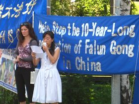 刘燕和高桂芬阿姨,一直在法拉盛《九评共产党》点讲真相,她们是一九九三年,九四年得法的北京大法弟子。她们表示,今天是七二零,十年前中共开始大肆抓捕法轮功修炼者。今天我们来到这里,是要告诉世人中共对法轮功的迫害。十年了,世人的态度也发生了很大的变化。迫害头几年,在曼哈顿发传单时人都很麻木。现在不一样了,好象明白过来了。去年法拉盛一伙人能搞得老百姓不敢和我们走近,不敢接报纸。现在回过神了,又来支持我们了,现在他们主动要报纸看了。