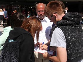 ![]() 马克(Mark)(中)听完法轮功真相后表示想要学功 |