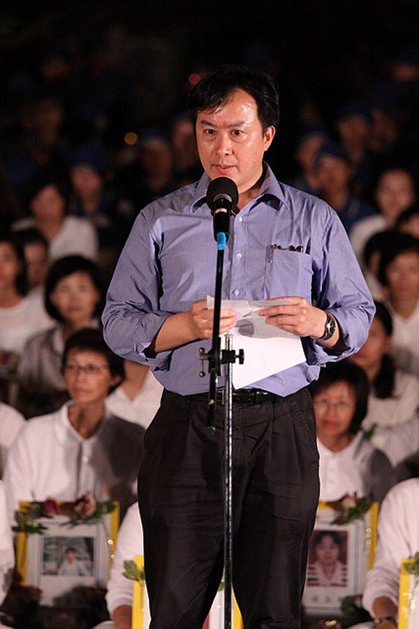 民进党社运部主任杨长镇代表党主席蔡英文参加烛光悼念与记者会。他以二次大战的一个故事提醒大家对于不义之事不可袖手旁观,因为这在无形中可能变成不义的共犯结构者,到头来自己也会是个受害者。他说二次大战德国纳粹展开一连串屠杀之际,有一个人悔恨莫及地说,当他们抓耶和华见证人时,因为我不是耶和华见证人,所以我没说话;当他们开始抓劳工社会运动主义者时,因为我不是劳工社会主义者,所以我也没说话;当他们开始抓犹太人时,因为我不是犹太人,所以我还是没说话;最后,当他们来抓我的时候,已经没有人可以为我说话了。