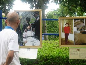 一位先生站在人行道上,远远地逐一仔细看着图片。记者趋前攀谈,原来他是一位落单的中国大陆游客,他说,能够看到这些图片真是太珍贵了。谈到中共这几年对法轮功的迫害,他说,一些过去炼法轮功的朋友不是被迫害致死,就是还被关押,或下落不明。