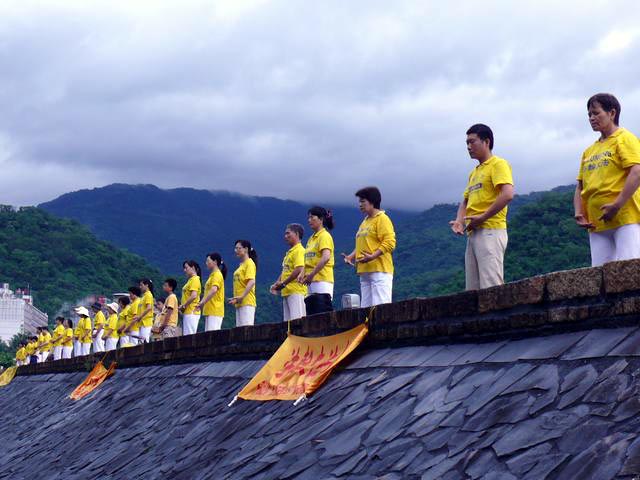 ![]() 知本温泉是大陆客来台东必游之地,法轮功学员在河堤上集体炼功,展现法轮功的美好。 |