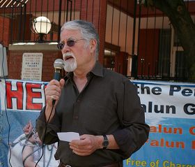 ![]() 中国人权网主席迈克尔·克雷格(Michael Craig)在集会上发言。 |