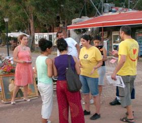 学员们告诉他,支持和帮助法轮功的最好方式,就是把他知道的这些真相告诉给他认识的所有人。这位青年人最后表示,他会把中共的罪行告诉给所有人的,他还要直接给中共使馆写信,谴责他们迫害法轮功的暴行。