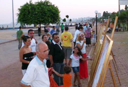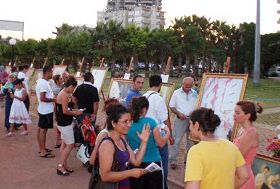 活动过程中,有一位衣着笔挺的年轻人逐一看完所有画作后,在活动现场停留了差不多两个小时还没有离去。最后,他来到学员们的近前,表示他要出钱帮助反迫害。学员们对他的善意支持表示感谢之后,向他详细地讲述了什么是法轮功以及中共迫害的详情。