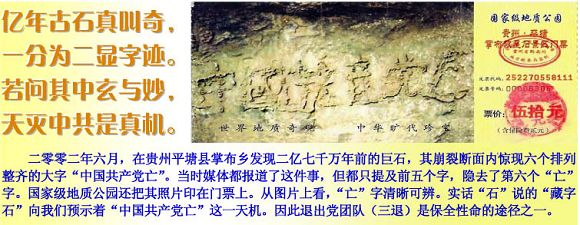 一个政权到了只能用军队警察来维持的时候,说明这个政权已走向末路了。现在各地抗暴事件频频发生,异象天灾不断,贵州平塘的藏字石更好的说明了神已经给中国共产党指明了一条路──亡!而中共再打造面子工程,再用高官厚禄来收买人心,再喊“和谐”口号也没人相信了。每年众多高官携款外逃,五千六百多万人“三退”(退党、退团、退队)是有力的证明。国内还有一些不明真相的人和既得利益者对中共还存有幻想,但他们助纣为虐只会加速中共政权的早日灭亡。所以共产主义信仰是末日信仰!