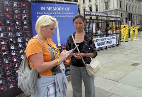 议会广场一带是游客青睐的伦敦旅游胜地,在一整天的大部份时间里总是熙熙攘攘,很繁忙。人流中很多是来自世界各地的步履悠闲的游客,也有很多衣着讲究步履匆匆的政要。他们纷纷表态支持法轮功和反对迫害,还有一些人要求现场学功。