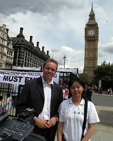 ![]() 英国议会议员大卫•博洛斯(左)和他选区的法轮功学员 |