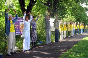 ![]() 拉脱维亚法轮功学员在中使馆前集体炼功,抗议迫害 |