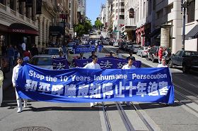 【明慧网二零零九年七月二十六日】(明慧记者王英旧金山报导)二零零九年七月二十五日,美国旧金山法轮功学员举行集会和游行,呼吁制止中共对法轮功长达十年的。