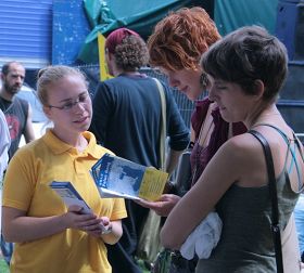 ![]() 学员们向“世界日”活动的游人讲真相 |