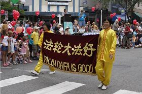 法轮功学员参加美国密歇根州安娜堡市第十九届独立日游行活动