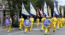 密歇根法轮功学员参加安娜堡国庆游行(图)