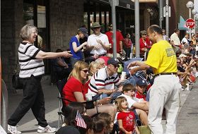 【明慧网二零零九年七月五日】(明慧记者徐菁密歇根报道)在密歇根州安娜堡市,美国独立日庆祝游行活动是每年夏日里的重头活动。二零零九年七月四日,当地的法轮功学员们再一次参加了由安娜堡青年商会(The Ann Arbor Jaycees)举办的第十九届独立日游行活动,为这里的东西方观众带来了独特的东方传统文化和“真善忍”的福音。