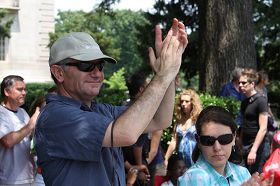 ![]() 2009年7月4日,法轮功团体第八次应邀参加美国首都独立日大游行,由天国乐团、旗队和腰鼓队组成,是所有参加游行的团体中规模最大的。 |