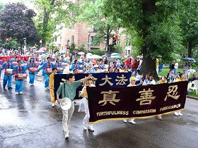 法轮功学员参加埃文斯敦美国独立日游行(图)
