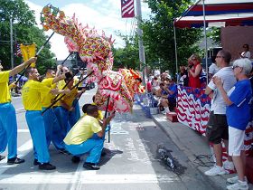 【明慧网二零零九年七月六日】二零零九年七月四日,由法轮大法学员组成的花车、舞龙队,第八次应邀参加了美国最古老的国庆游行。这支独具东方特色的游行队伍吸引了当日罗德岛州布里斯特(Bristol, RI)十几万热情的观众。