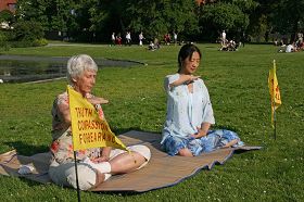 在风景优美的哥本哈根国王公园,人们经常看到法轮功学员在那里集体炼功。二零零九年七月四日上午学员炼功时,有位中国人来买《转法轮》。他前两周就来过,了解到法轮功的一些情况,看到学员言谈举止都表现出真诚、友善和理性,并不象中共所宣传的那样。他对功法非常感兴趣,按照真善忍做好人,加上炼功,能让人身体恢复健康,能使人道德回升,真是很美好的事情。学员告诉他:“不带有任何有求之心来学,是无为的。很多人学了后,出现很多神奇的事,但是有个前提,就是不抱有任何有求的心。”