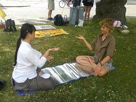 ![]() 对法轮功感兴趣的人当场学功 |