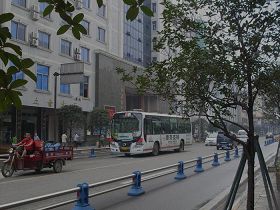 双流法院所在的顺城街(当地一条主要干道)。7月8日对邓小明开庭,车辆被禁止通行,引无数路人围观
